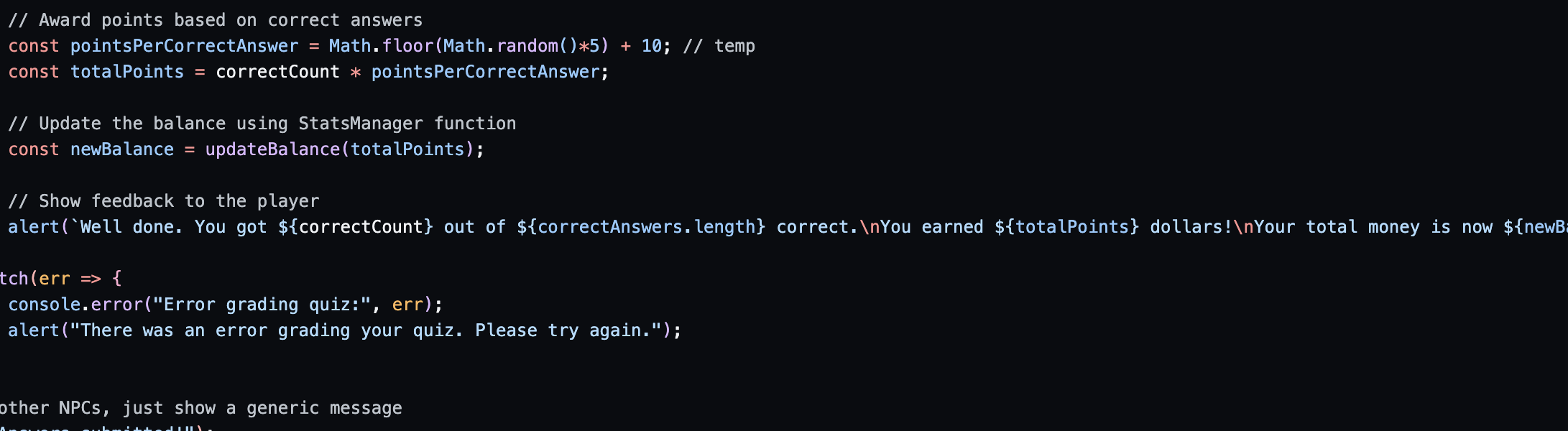 So far, we have come up with a few ideas for new features we want to implement into the game level. Here are a few of our works which are finished:- Randomized dialogue with NPCS (where applicable)