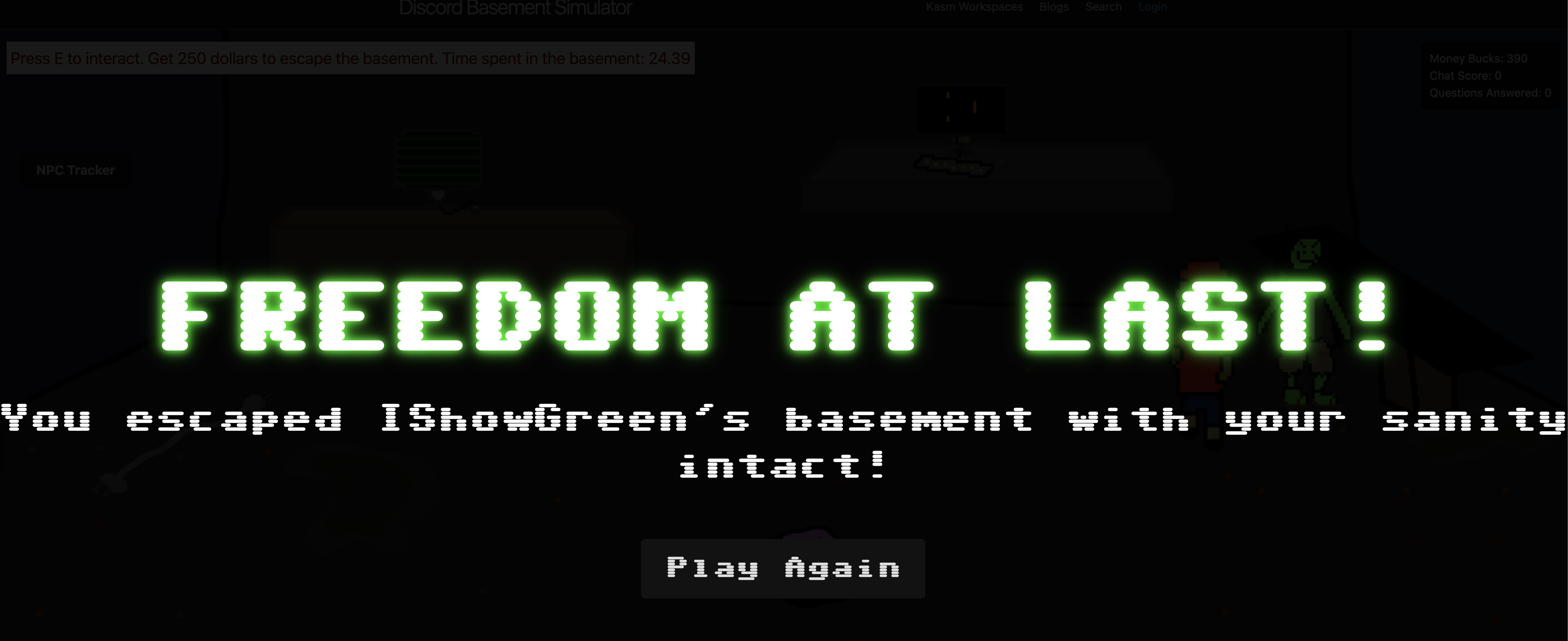 - Replaced "Balance" with "Money Bucks". Earn money bucks by completing the quiz on computer 2. When the password game is finished on computer 1, that will also reward money. Earning 250 dollars allows you to escape the basement by talking to IShowGreen.